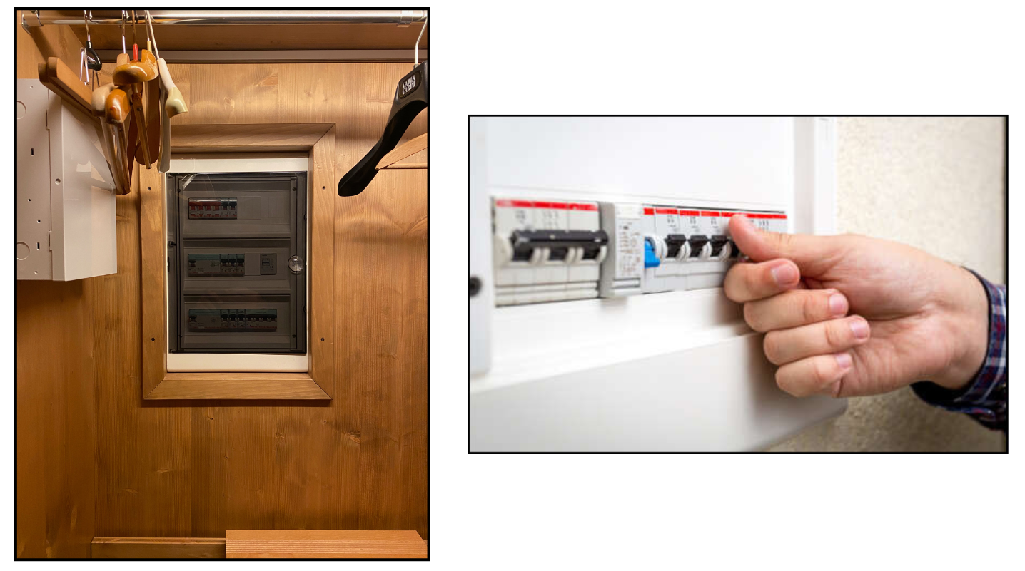 In the event of a power failure, first thing to do is to turn off all appliances that were in operation (washing machine, dryer, dishwasher, oven) and check the electrical panel located located inside the hallway closet. Check that all switches are in the ON position (upwards); otherwise, pull them all up to the ON position.